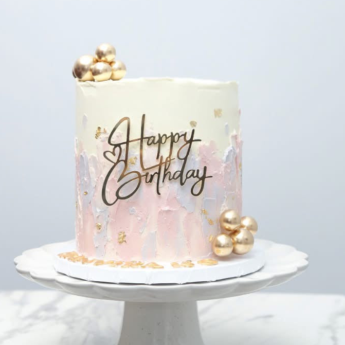 Soft textured buttercream in beautiful custom colour combinations, designed for a modern elegant celebration.Finished with luxurious metallic spheres and a timeless birthday topper.Perfect for those who love minimal yet sophisticated cakes 🤍
